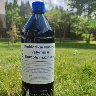 „Probiotikai Nuotekų valymui ir Dumblo mažinimui“ yra gyvas probiotinis produktas, kurio sudėtyje esantys anaerobiniai probiotiniai mikroorganizmai turi stiprias antioksidacines, antientropines ir intoksikaciją šalinančias savybes. Šis produktas sukuria mikrobiologinę aplinką, nepalankią patogeninių mikrooganizmų vystymuisi, efektyviai ir greitai naikina organinę taršą, neleidžia susidaryti nemaloniems kvapams.